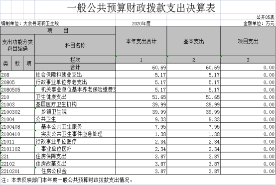 納入本套單位決算匯編范圍的單位共1個,包括:大余縣河洞衛生院。
