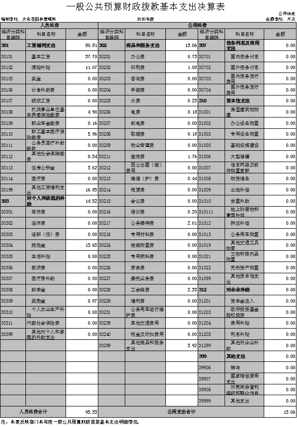 本部門2020年度財政撥款本年支出年初預算數為105.31萬元,決算數為108.39萬元,完成年初預算的103%。其中: