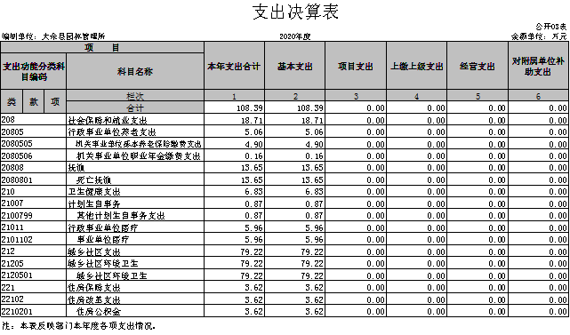 本年支出的具體構成為:基本支出108.39萬元,占100%;項目支出0萬元,占0%;經營支出0萬元,占0%;其他支出(對附屬單位補助支出、上繳上級支出)0萬元,占0%。
