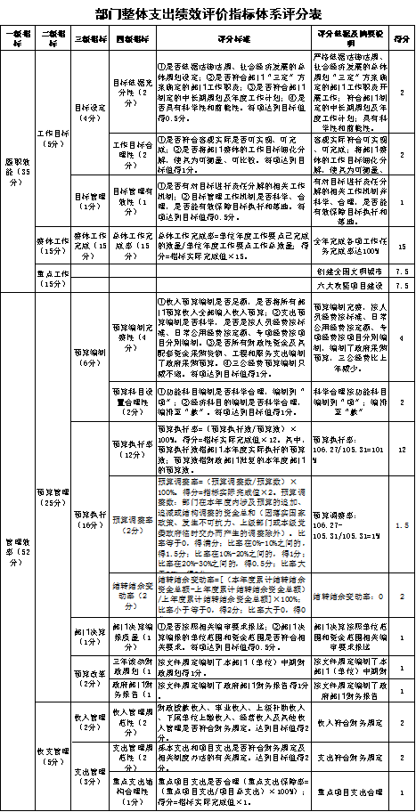 大余縣園林管理所2020年部門整體支出績效評價指標體系評分表