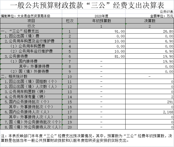 本部門2020年度一般公共預算財政撥款“三公”經(jīng)費支出年初預算數(shù)為91萬元,決算數(shù)為 26.80 萬元,完成預算的 29.45 %,決算數(shù)較2019年減少13.42萬元,下降50.07 %,其中: