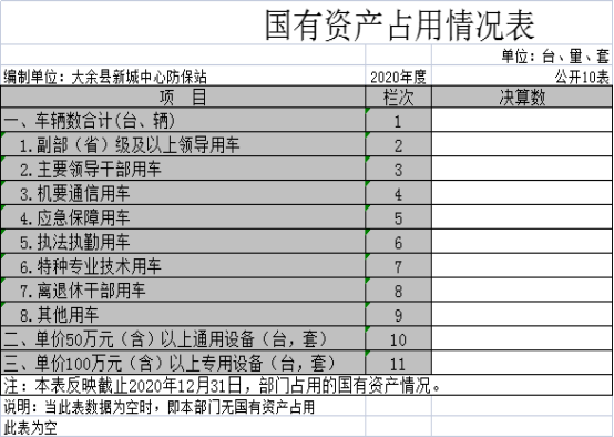 截止2020年12月31日,本單位(單位)國(guó)有資產(chǎn)占用情況見(jiàn)公開10表《國(guó)有資產(chǎn)占用情況表》。無(wú)車輛中的其他用車。
