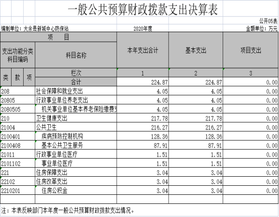 納入本套單位決算匯編范圍的單位共1個(gè),包括:大余縣新城中心防保站。