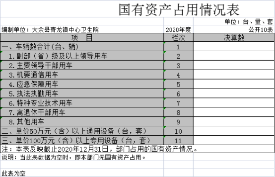 截止2020年12月31日,本單位國有資產占用情況見公開10表《國有資產占用情況表》。無車輛中的其他用車。
