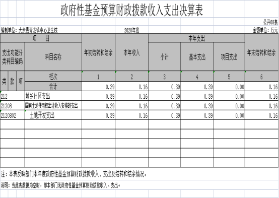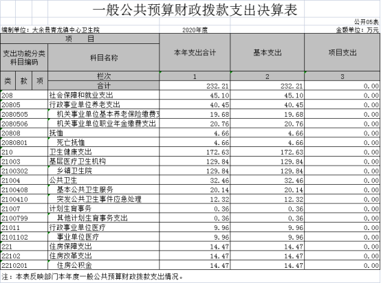 納入本套單位決算匯編范圍的單位共1個,包括:大余縣青龍鎮中心衛生院。