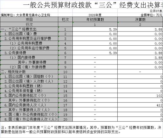 (三)“三公”經費:納入財政預決算管理的“三公”經費,是指單位用財政撥款安排的因公出國(境)費、公務用車購置及運行費和公務接待費。其中,因公出國(境)費反映單位公務出國(境)的國際旅費、國外城市間交通費、住宿費、伙食費、培訓費、公雜費等支出;公務用車購置及運行費反映單位公務用車車輛購置支出(含車輛購置稅)及租用費、燃料費、維修費、過路過橋費、保險費、安全獎勵費用等支出;公務接待費反映單位按規定開支的各類公務接待支出。