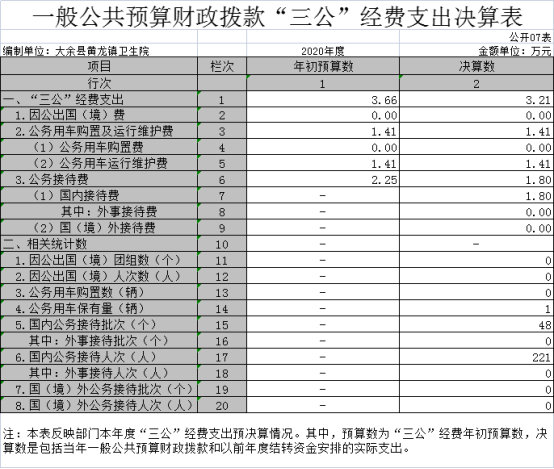 八、“三公”經費:納入財政預決算管理的“三公”經費,是指單位用財政撥款安排的因公出國(境)費、公務用車購置及運行費和公務接待費。其中,因公出國(境)費反映單位公務出國(境)的國際旅費、國外城市間交通費、住宿費、伙食費、培訓費、公雜費等支出;公務用車購置及運行費反映單位公務用車車輛購置支出(含車輛購置稅)及租用費、燃料費、維修費、過路過橋費、保險費、安全獎勵費用等支出;公務接待費反映單位按規定開支的各類公務接待(含外賓接待)支出。