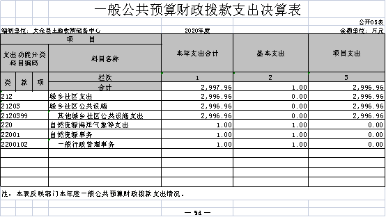 納入本套部門決算匯編范圍的單位共1個(gè),包括:大余縣土地收購(gòu)儲(chǔ)備中心。