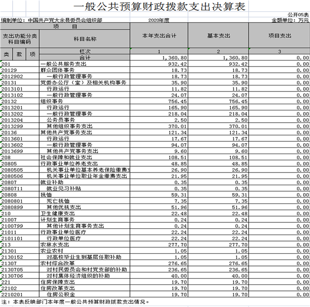 (縣委組織部) 2020年度大余縣部門決算公開情況統(tǒng)計(jì)表