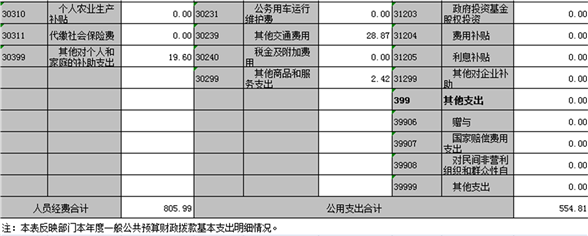 (五)“三公”經(jīng)費(fèi):納入財(cái)政預(yù)決算管理的“三公”經(jīng)費(fèi),是指部門用財(cái)政撥款安排的因公出國(境)費(fèi)、公務(wù)用車購置及運(yùn)行費(fèi)和公務(wù)接待費(fèi)。其中,因公出國(境)費(fèi)反映單位公務(wù)出國(境)的國際旅費(fèi)、國外城市間交通費(fèi)、住宿費(fèi)、伙食費(fèi)、培訓(xùn)費(fèi)、公雜費(fèi)等支出;公務(wù)用車購置及運(yùn)行費(fèi)反映單位公務(wù)用車車輛購置支出(含車輛購置稅)及租用費(fèi)、燃料費(fèi)、維修費(fèi)、過路過橋費(fèi)、保險(xiǎn)費(fèi)、安全獎(jiǎng)勵(lì)費(fèi)用等支出;公務(wù)接待費(fèi)反映單位按規(guī)定開支的各類公務(wù)接待支出。