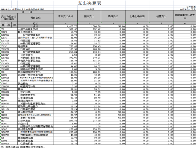 本部門2020年度財(cái)政撥款本年支出年初預(yù)算數(shù)為1216.94萬元,決算數(shù)為1425.77萬元,完成年初預(yù)算的117.16%。其中: