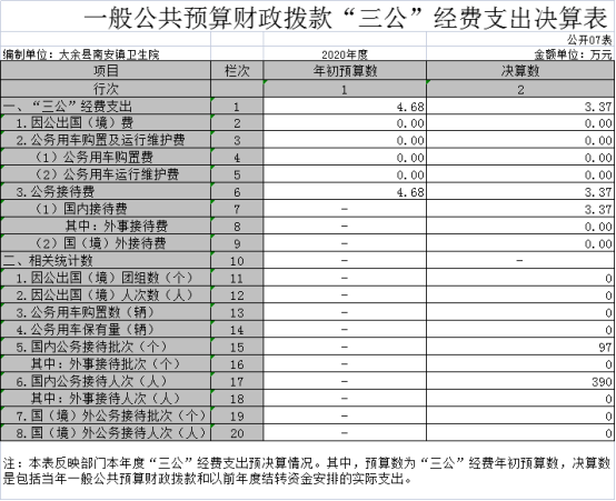 納入本套單位決算匯編范圍的單位共1個,包括:大余縣南安鎮衛生院。