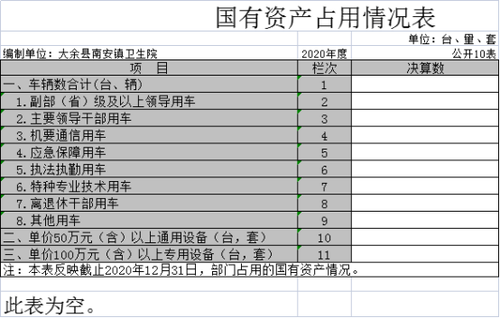 截止2020年12月31日,本單位(單位)國有資產占用情況見公開10表《國有資產占用情況表》。其中車輛中的其他用車主要是無其他用車。