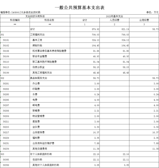 第三部分 大余縣農業農村局本級2022年單位預算情況說明