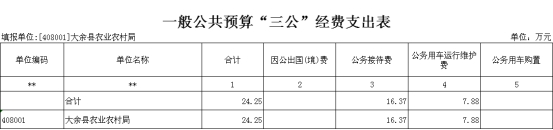 2022年大余縣農業農村局本級“三公”經費一般公共預算安排24.25萬元。其中: