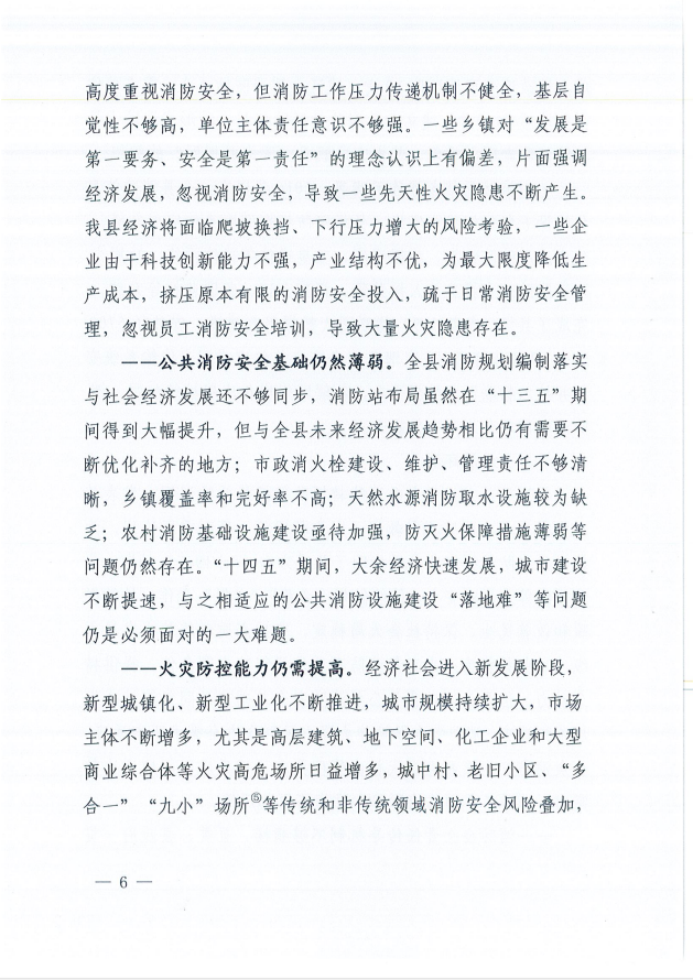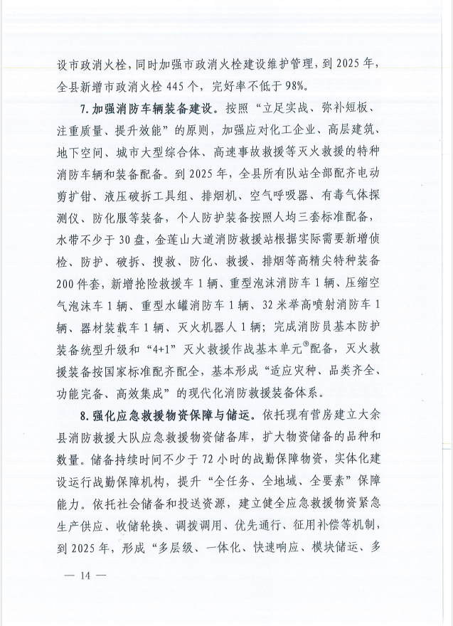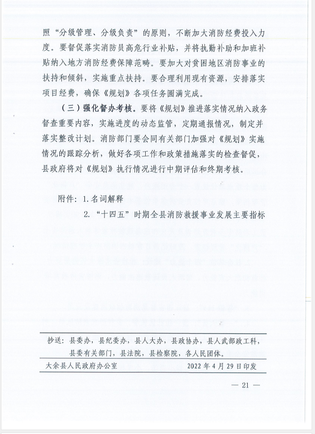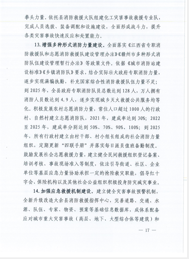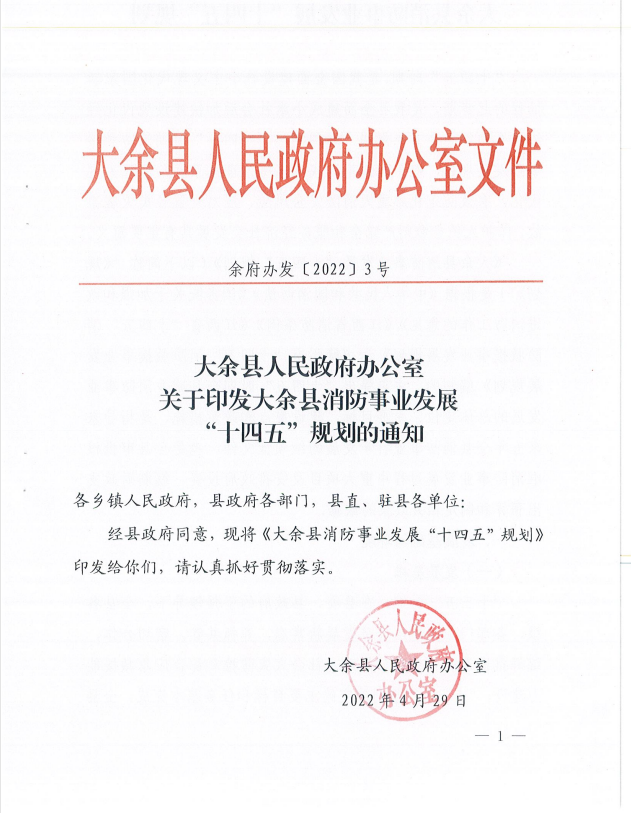 關(guān)于印發(fā)大余縣消防事業(yè)發(fā)展“十四五”規(guī)劃的通知