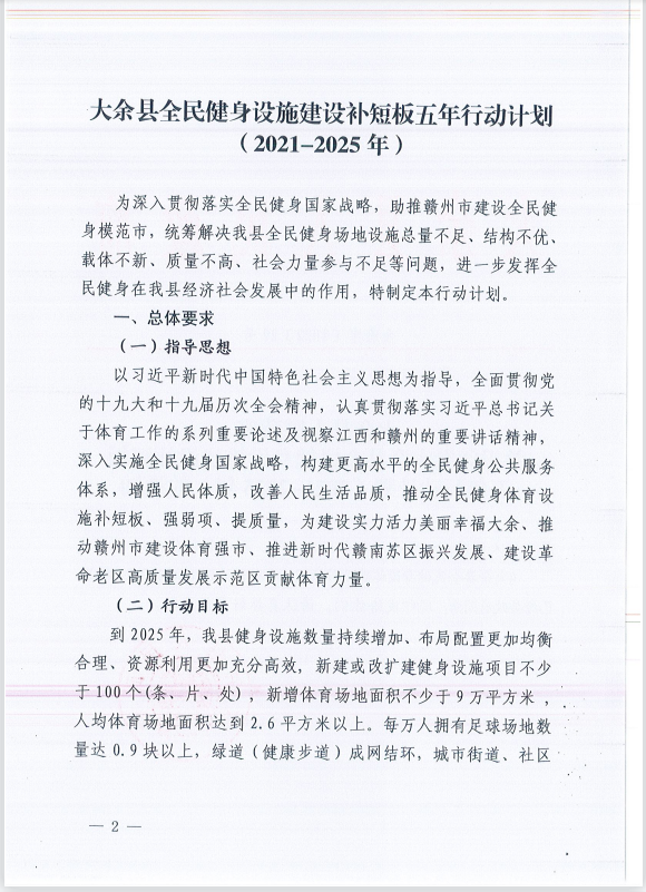 解讀《大余縣全民健身設施建設補短板五年行動計劃(2021-2025年)》