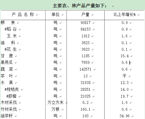 畝,減少 7 畝;果園面積 69230 畝,減少 14.1%,其中臍橙面積 25150 畝,