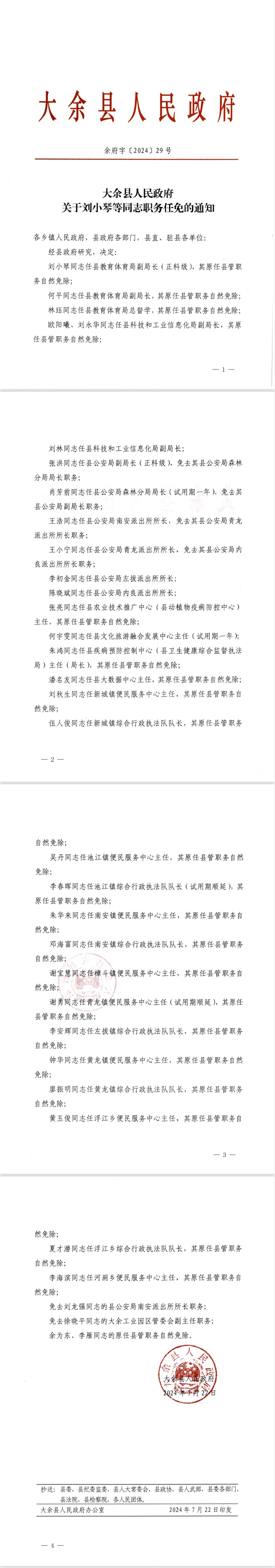 大余縣人民政府關于劉小琴等同志職務任免的通知
