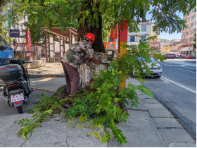 在清理現場,綠化養護工人手持枝剪、柴刀等工具,對樟樹、大葉榕等常見綠化樹木的萌芽進行精準修剪。他們重點針對樹干基部、主枝分叉處萌發的多余枝條,按照“留強去弱、疏密適度”的原則,逐一清理,同時注意修剪切口的平整,避免對樹木造成二次傷害。