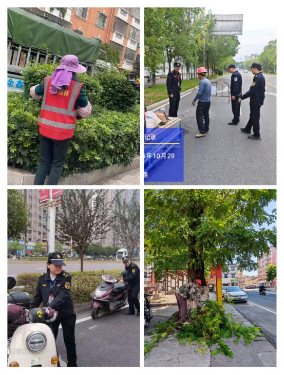 整治占道經營、亂堆亂放、亂曬亂掛等損壞市容行為600余起,拆除破舊廣告牌、破損店牌店招、破損護欄200多塊,清理城市道路及綠化帶枯枝、雜草、垃圾約500噸,修建城市美化樹木400余株,修復破損路面、修剪街頭綠地約10000平方米,開展路燈檢修100余起。