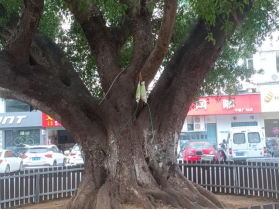 于是,市政中心巡查組組織綠化養(yǎng)護(hù)工人對(duì)中信廣場(chǎng)大型喬木進(jìn)行輸營(yíng)養(yǎng)液。綠化養(yǎng)護(hù)工人在樹干基部80~100厘米處,以45度斜角打孔,深度約5厘米,避免同一水平線重復(fù)鉆孔,再根據(jù)樹木胸徑確定用量,每袋容量約1000毫升,懸掛營(yíng)養(yǎng)液后觀察3~5分鐘確認(rèn)無積液,輸液速度控制在24~30小時(shí)/500mL,避免營(yíng)養(yǎng)液外溢。同時(shí)部分營(yíng)養(yǎng)液中添加防蟲害藥劑(如毒死蜱、聯(lián)苯·蟲螨腈復(fù)配劑),可在補(bǔ)充養(yǎng)分的同時(shí)防治蚜蟲、天牛等害蟲,減少化學(xué)噴灑對(duì)環(huán)境的污染。