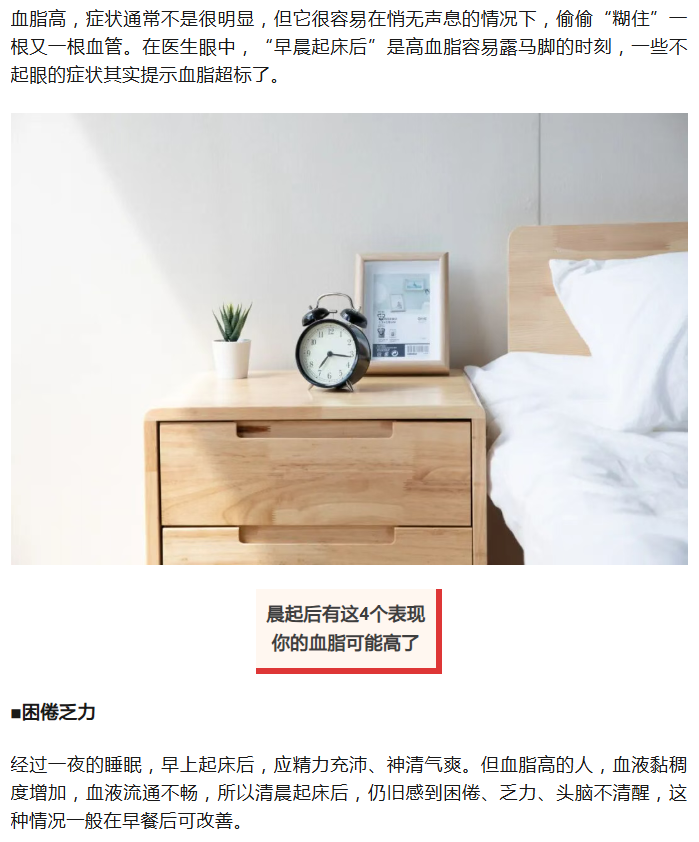 晨起后這四個(gè)信號暗示血脂超標(biāo)!快看看你中了沒?