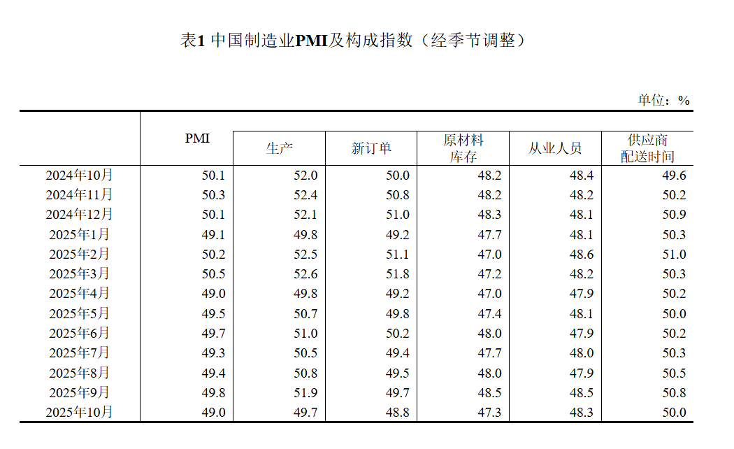 10月份,制造業采購經理指數(PMI)為49.0%,比上月下降0.8個百分點,制造業景氣水平有所回落。