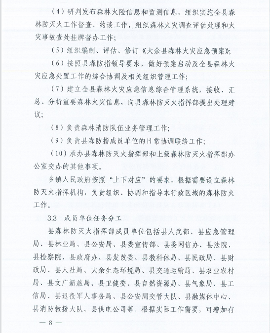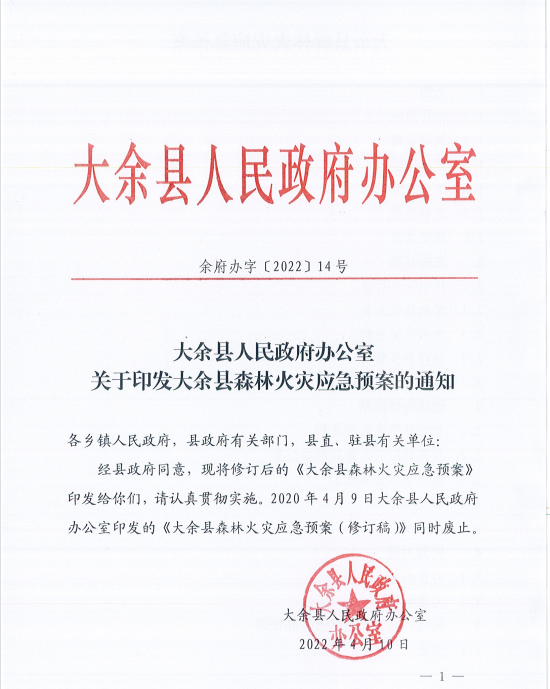 關(guān)于印發(fā)大余縣森林火災(zāi)應(yīng)急預(yù)案的通知