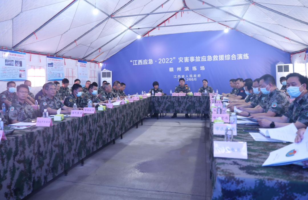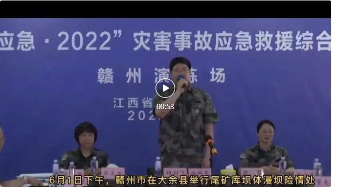 作為“江西應急·2022”災害事故應急救援綜合演練科目之一,贛州市在江西省演練指揮部的統一指揮下,與全省其他地區演練科目同步展開。演練以大余縣連續強降雨為背景,模擬暴雨將山體周邊的大量樹枝、雜物沖刷進江西下壟鎢業有限公司樟斗尾礦庫,堵塞排水井,庫內水位暴漲,可能出現漫壩險情,嚴重威脅尾礦庫下游人民群眾生命財產安全。