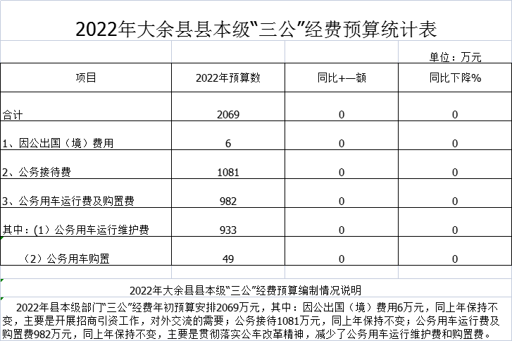 2022年大余縣縣本級(jí)“三公”經(jīng)費(fèi)預(yù)算統(tǒng)計(jì)表