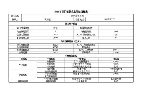 2019年縣教育系統部門支出預算總額為48827萬元,較上年預算增加10.7%。其中: