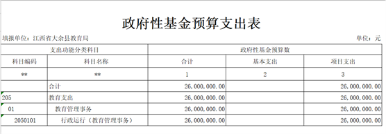 2019年縣教育系統政府性基金預算收支2600萬元,均為項目支出。