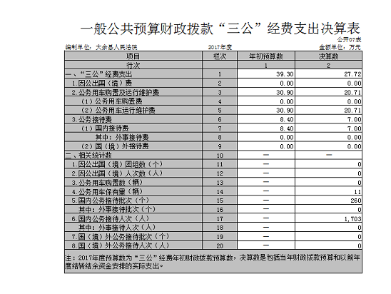 (四)“三公經費”:納入財政預決算管理的“三公”經費,是指部門用財政撥款安排的因公出國(境)費、公務用車購置及運行費和公務接待費。其中,因公出國(境)費反映單位公務出國(境)的國際旅費、國外城市間交通費、住宿費、伙食費、培訓費、公雜費等支出;公務用車購置及運行費反映單位公務用車車輛購置支出(含車輛購置稅)及租用費、燃料費、維修費、過路過橋費、保險費、安全獎勵費用等支出;公務接待費反映單位按規定開支的各類公務接待(含外賓接待)支出。