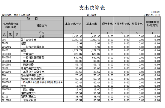 本部門2017年度支出總計2238.55萬元,其中本年支出合計1435.38萬元,較2016年減少455.37萬元,下降24 %,主要原因是:退休干警較多,人員減少,案件減少,培訓次數減少、辦公用房維修減少;年末結轉和結余803.16萬元,較2016年增加495.62萬元,增長1.61 %,主要原因是:上年結余結轉為本年繼續使用會形成本年結余有所提高。