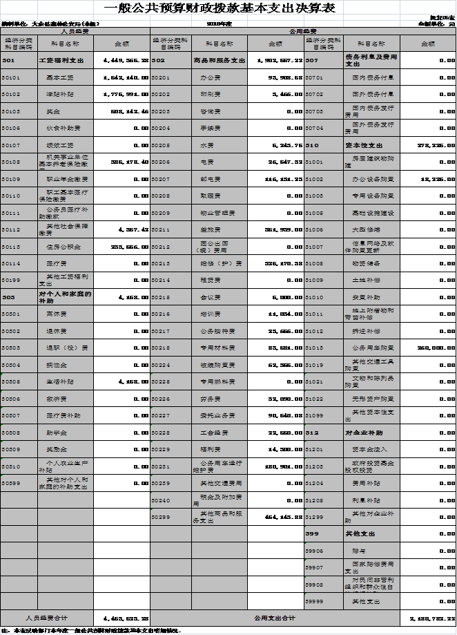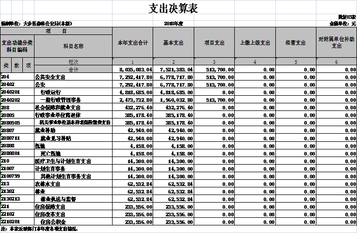 本年支出的具體構成為:基本支出752.14萬元,占93.6 %;項目支出 513.700萬元,占 6.4 %。