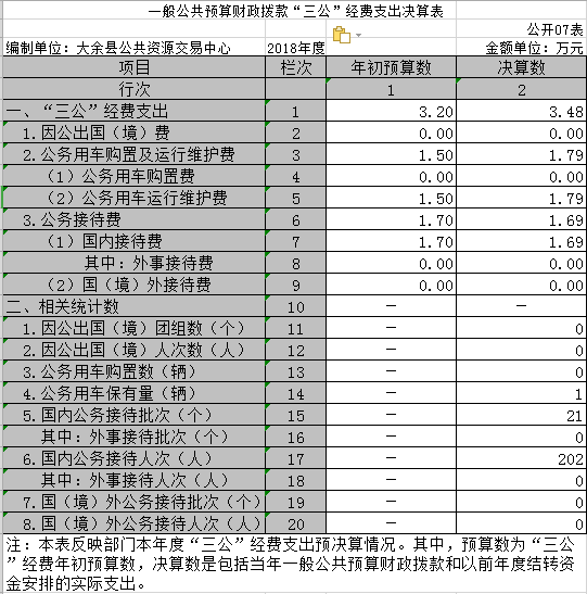 (五)“三公經(jīng)費”:納入財政預(yù)決算管理的“三公”經(jīng)費,是指部門用財政撥款安排的因公出國(境)費、公務(wù)用車購置及運行費和公務(wù)接待費。其中,因公出國(境)費反映單位公務(wù)出國(境)的國際旅費、國外城市間交通費、住宿費、伙食費、培訓(xùn)費、公雜費等支出;公務(wù)用車購置及運行費反映單位公務(wù)用車車輛購置支出(含車輛購置稅)及租用費、燃料費、維修費、過路過橋費、保險費、安全獎勵費用等支出;公務(wù)接待費反映單位按規(guī)定開支的各類公務(wù)接待支出。