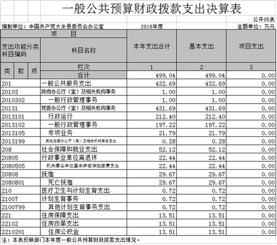 五、一般公共預算財政撥款支出決算表