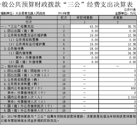 (九)“三公經費”:納入財政預決算管理的“三公”經費,是指部門用財政撥款安排的因公出國(境)費、公務用車購置及運行費和公務接待費。其中,因公出國(境)費反映單位公務出國(境)的國際旅費、國外城市間交通費、住宿費、伙食費、培訓費、公雜費等支出;公務用車購置及運行費反映單位公務用車車輛購置支出(含車輛購置稅)及租用費、燃料費、維修費、過路過橋費、保險費、安全獎勵費用等支出;公務接待費反映單位按規定開支的各類公務接待(含外賓接待)支出。