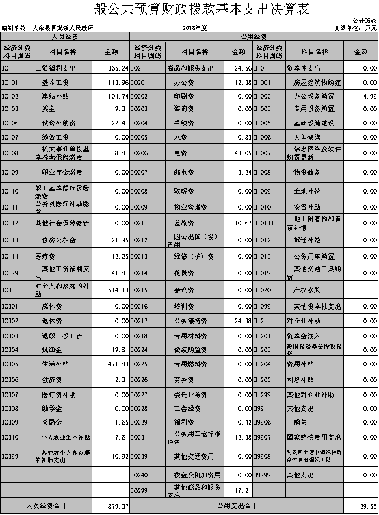 (一)一般公共服務支出(類)政府辦公廳(室)及相關機構事務(款)行政運行(項):反映行政單位(包括實行公務員管理的事業單位)的基本支出。