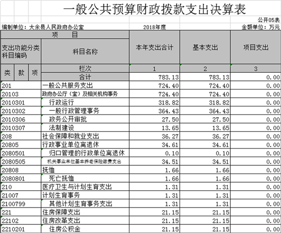 (一)一般公共服務支出(類)政府辦公廳(室)及相關機構事務(款)行政運行(項):反映行政單位(包括實行公務員管理的事業單位)的基本支出。
