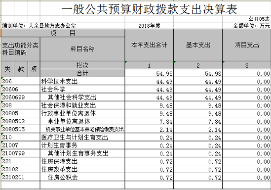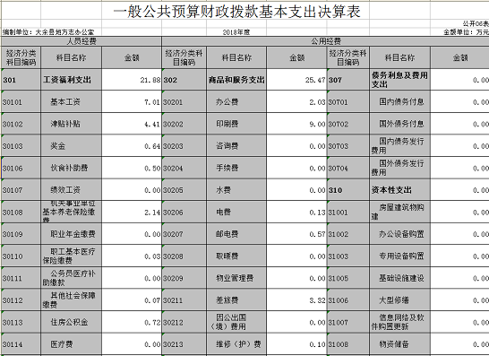 本部門2018年度財政撥款本年支出年初預算數為 62.26 萬元,決算數為 62.26 萬元,完成年初預算的 100 %。其中: