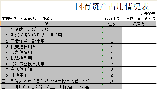 九、國有資產占用情況表