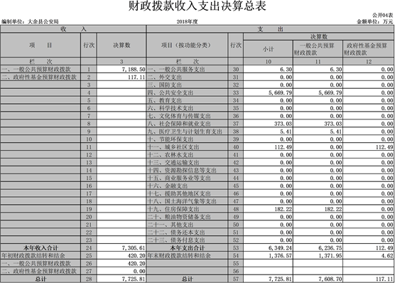 (二)公共安全支出年初預算數為5538.37萬元,決算數為 5642.9萬元,完成年初預算的101.89%。