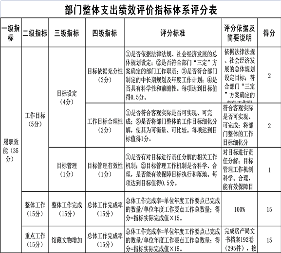 部門整體支出績效評價指標體系及評分標準-2018年 (大余縣檔案局)