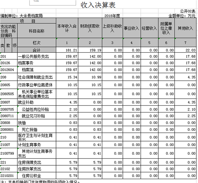 納入本套部門決算匯編范圍的單位共1個,即:大余縣檔案局。