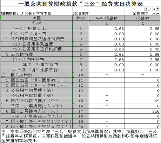 (二)公務接待費支出年初預算數為2.66萬元,決算數為2.66萬元,完成預算的100 %,決算數較2017年增加0.31萬元,增長13.09%,國內公務接待批次為21次,國內接待人次538人次,與2017年相差不大。