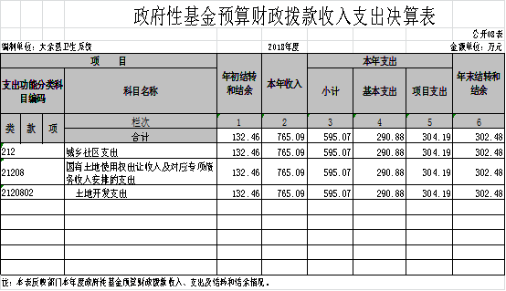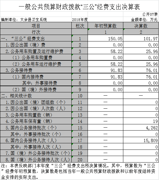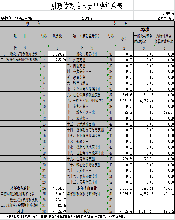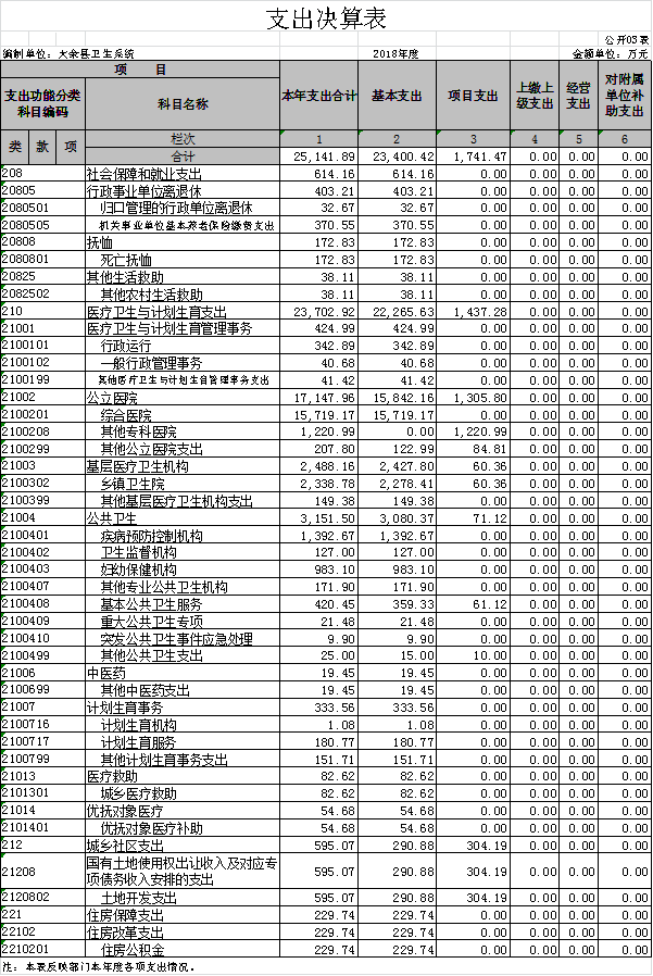 大余縣衛生部門2018年度部門決算