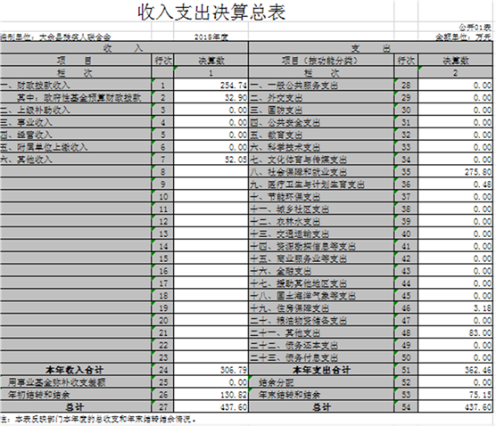 納入本套部門決算匯編范圍的單位共1個,包括:大余縣殘疾人聯合會。