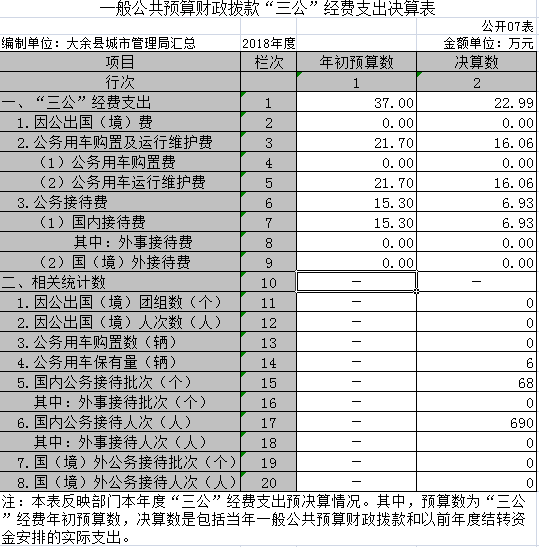 本部門2018年度一般公共預(yù)算財政撥款“三公”經(jīng)費(fèi)支出年初預(yù)算數(shù)為37萬元,決算數(shù)為22.99萬元,完成預(yù)算的62%,決算數(shù)較2017年減少7.95萬元,下降25.69%,其中: